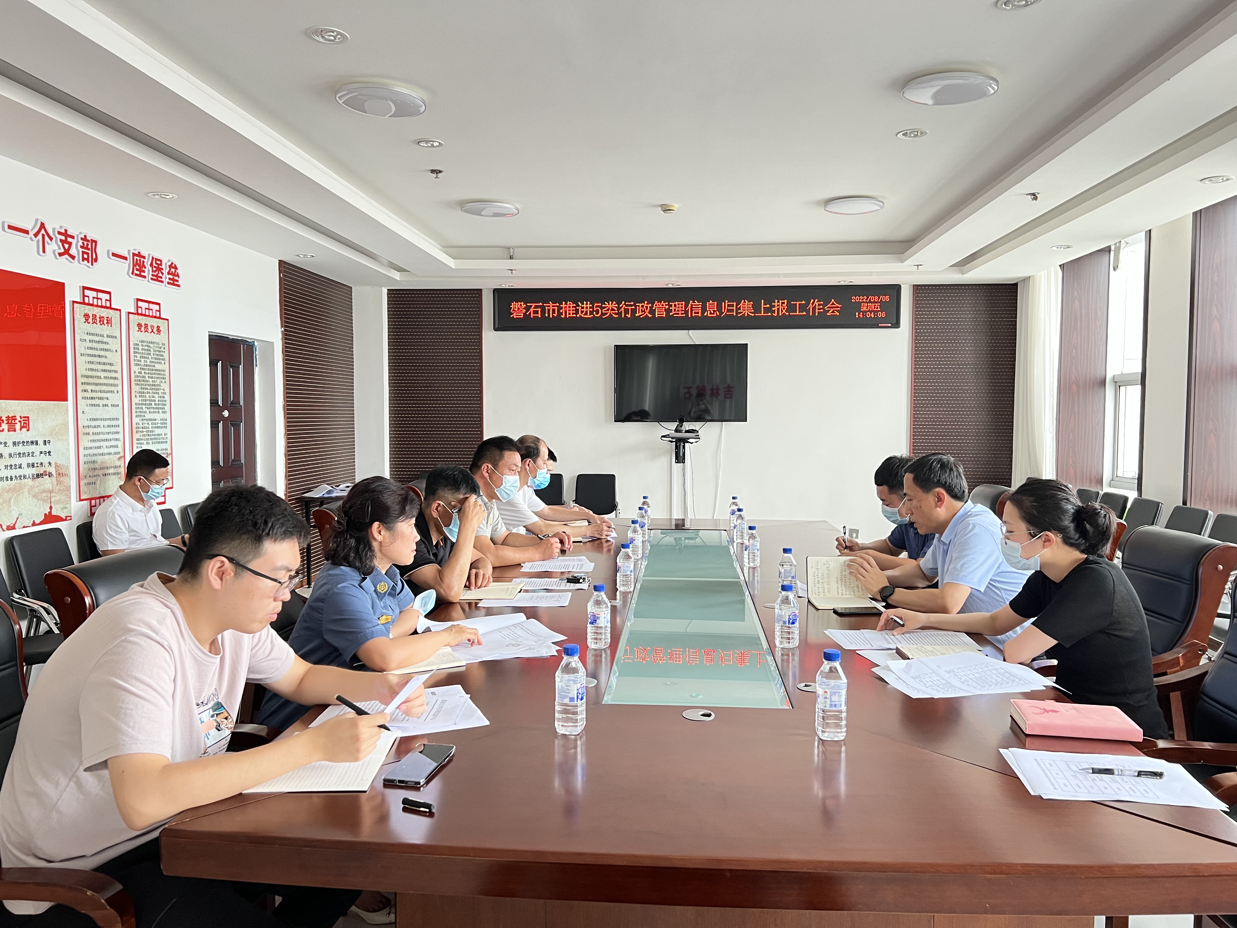 为加快构建信用信息归集共享机制,加大公共信用信息应用。磐石市政务服务局于8月5日组织召开行政强制、行政确认、行政裁决、行政奖励、行政监督检查等5类行政管理信息数据归集工作推进会,高标准推进行政管理信息归集共享应用。