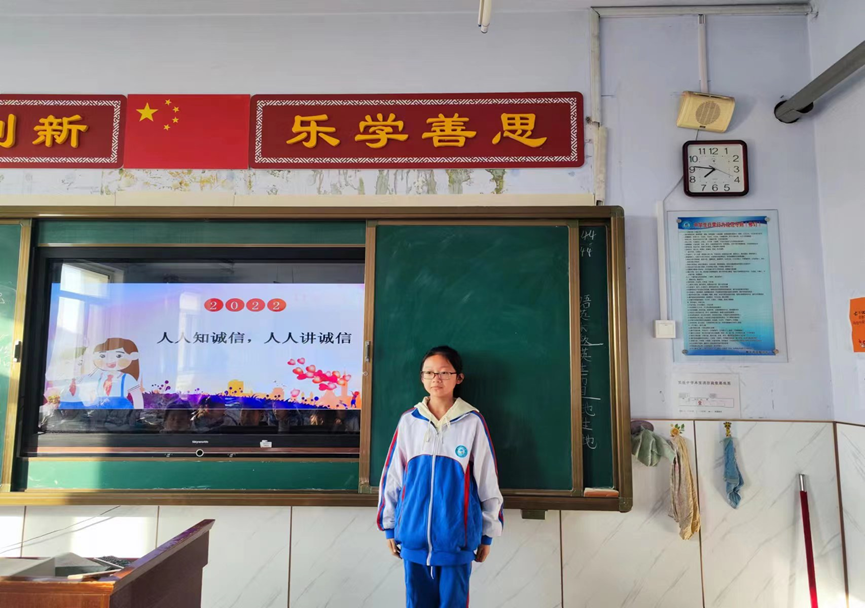 (三)开展“诚信教育进校园”主题班会。2022年10月20日,磐石市实验中学各班开展了一次以"人人知诚信、人人讲诚信"为主题的班会活动。通过开展诚信教育主题班会,引导学生树立"做诚信人、讲诚信话、做诚信事"的观念,教育学生从日常学习中入手、从小事做起,在待人接物中讲诚信、守承诺,挖掘现实生活中有关诚信的典型案例和人物,抨击不诚信的人和事。